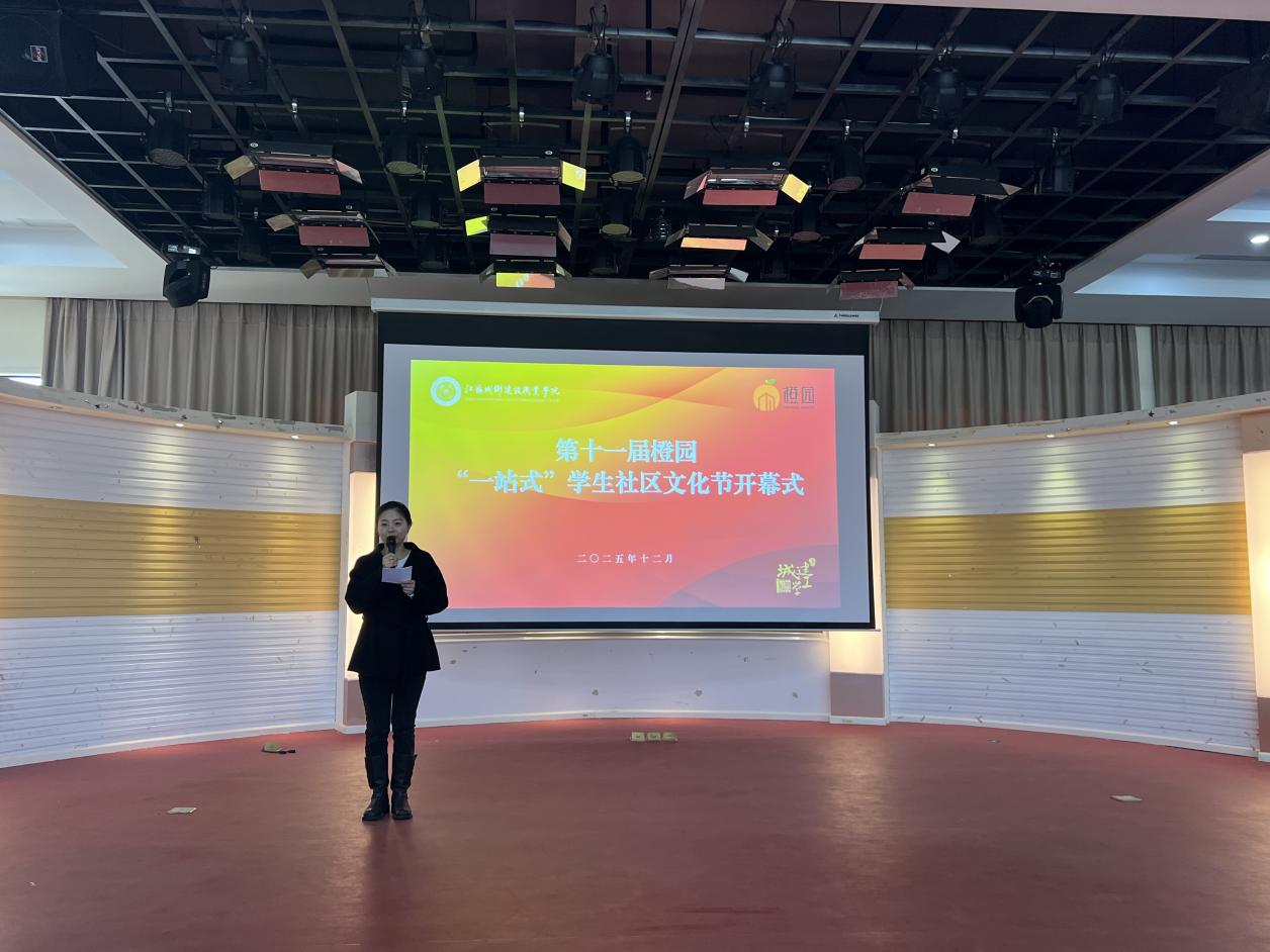 开幕式上,主持人刘苏青详细介绍了本届社区文化节“共建活力橙园,共筑成长家园”的活动宗旨。本届文化节采用“校级统筹+二级学院联动”的多场次举办模式,实现橙园学生社区全体住宿学子全覆盖。其中,校级层面活动聚焦“成长赋能”与“成长服务”两大核心方向;各二级学院则紧密结合自身专业特色,分别围绕“书香 平安 艺美”“匠魂 匠行 匠德”“守护 治愈 引航”等特色主题,精心策划并开展系列文化浸润、实践体验及价值引领活动,全力推动学生社区向“思想引领、文化浸润、成长赋能”的综合育人平台升级。