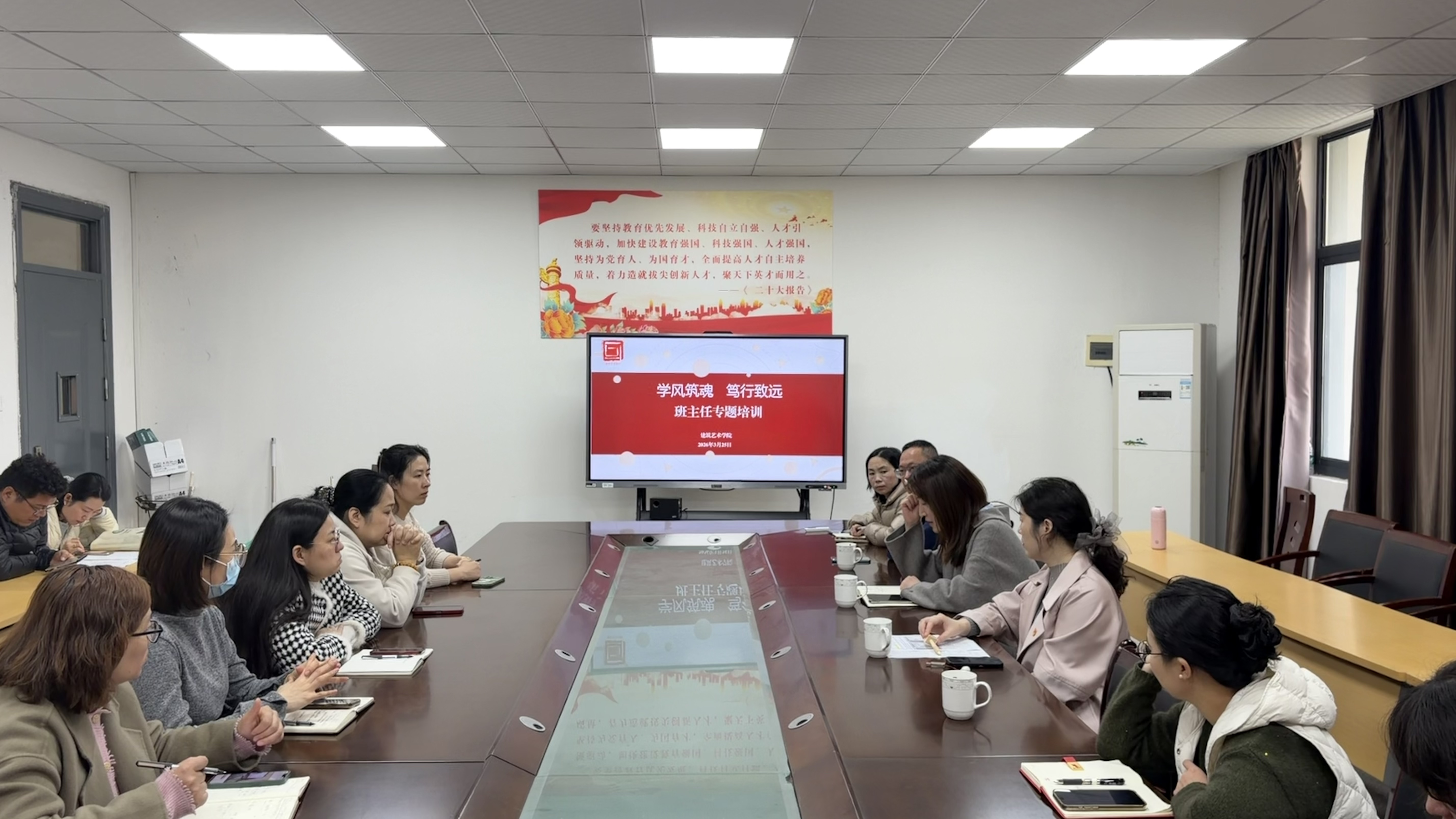 为全面加强班主任队伍建设,提升学风建设工作实效,强化育人责任与专业能力,引导班主任以优良学风铸魂育人、以实干担当助力学生成长,建筑艺术学院于3月25日在8204召开了“学风铸魂 笃行致远”班主任专题培训。会议由学院党总支委员张燕飞主持,学院副院长刘胜男主讲,全体班主任参加培训。