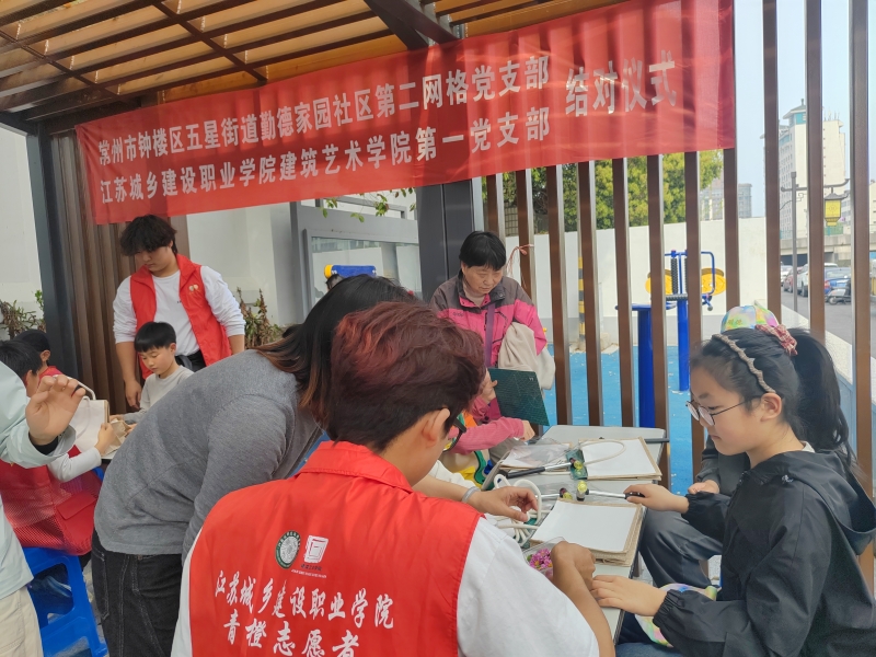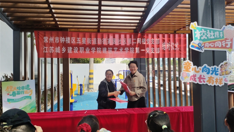 4月2日,江苏城乡建设职业学院建筑艺术学院党总支书记袁平带队第一支部党员、学生代表,赴常州市钟楼区五星街道勤德家园社区,与社区第二网格党支部举行党建共建签约仪式,并共同开展“橙光绘非遗 春苗行运河”校社合作主题系列志愿服务活动。